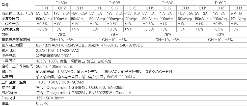 产品名称:T-60W三组开关电源